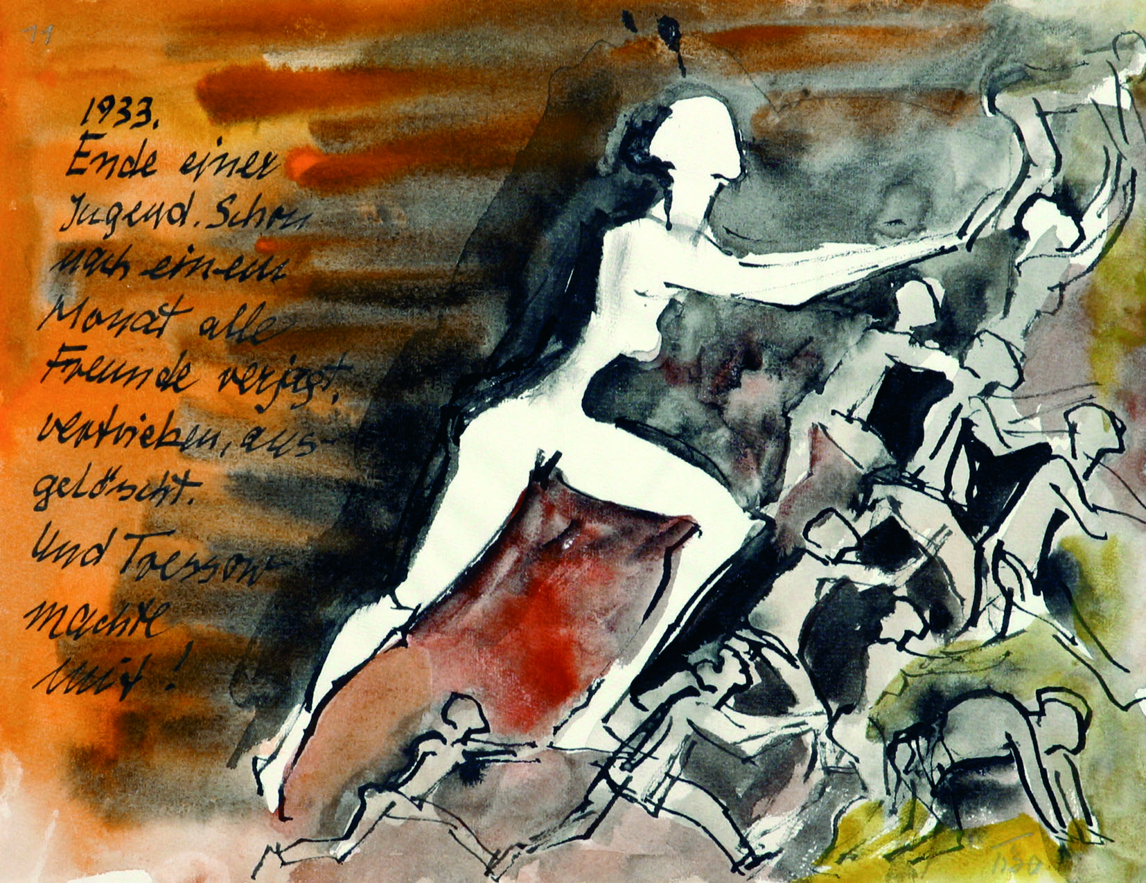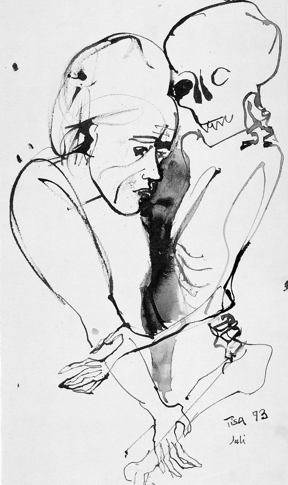"Selbst mit Tod", 1993, Tusche, 40 x 24 cm, Kloster St. Ursula