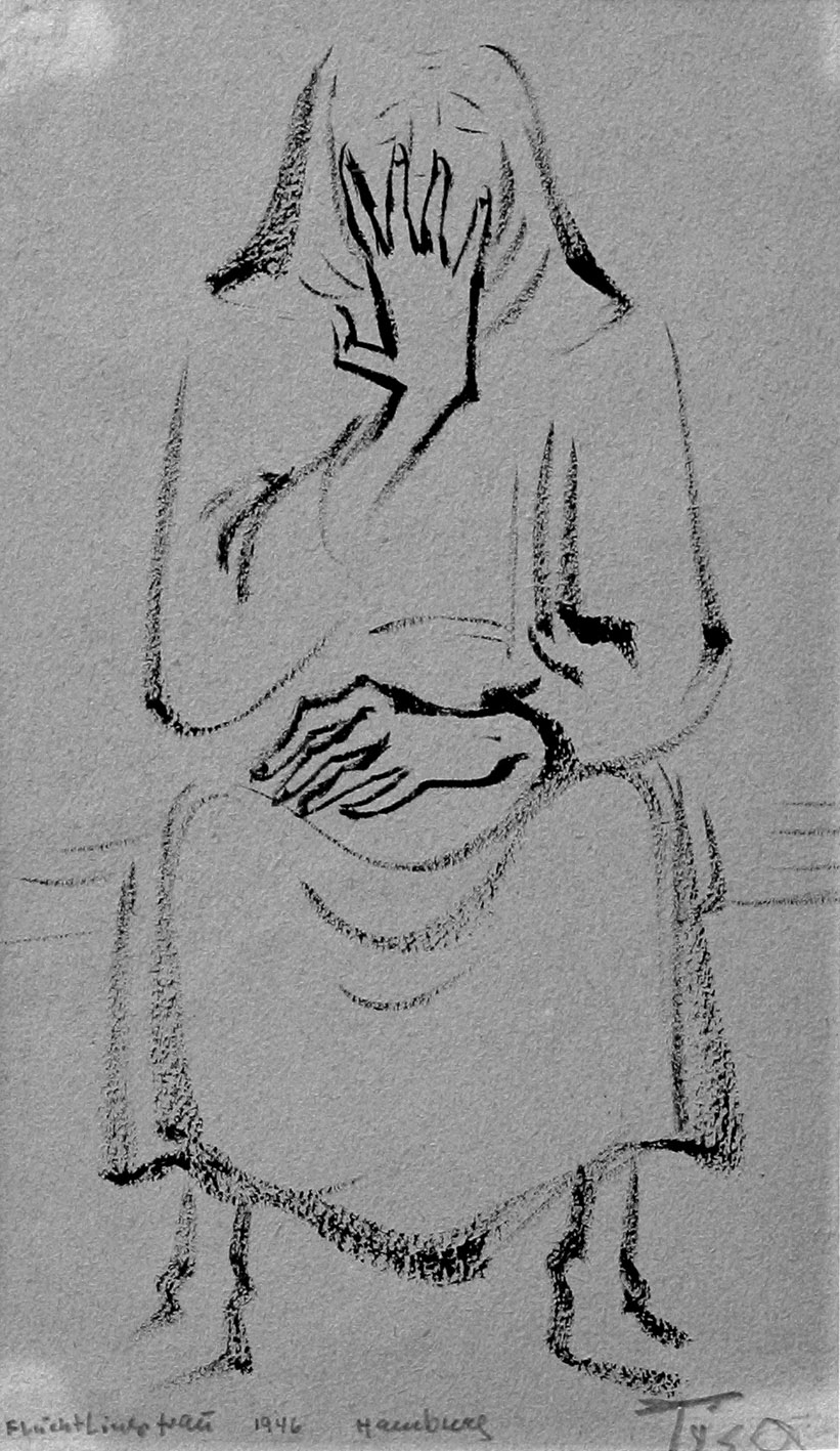 "Flüchtlingsfrau", 1946, Tusche, 19 x 13 cm, Kloster St. Ursula