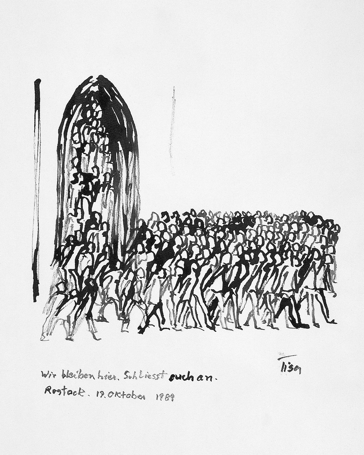 "Friedensgebet - Rostock", 1989, Tusche, 40 x 30 cm, Kloster St. Ursula