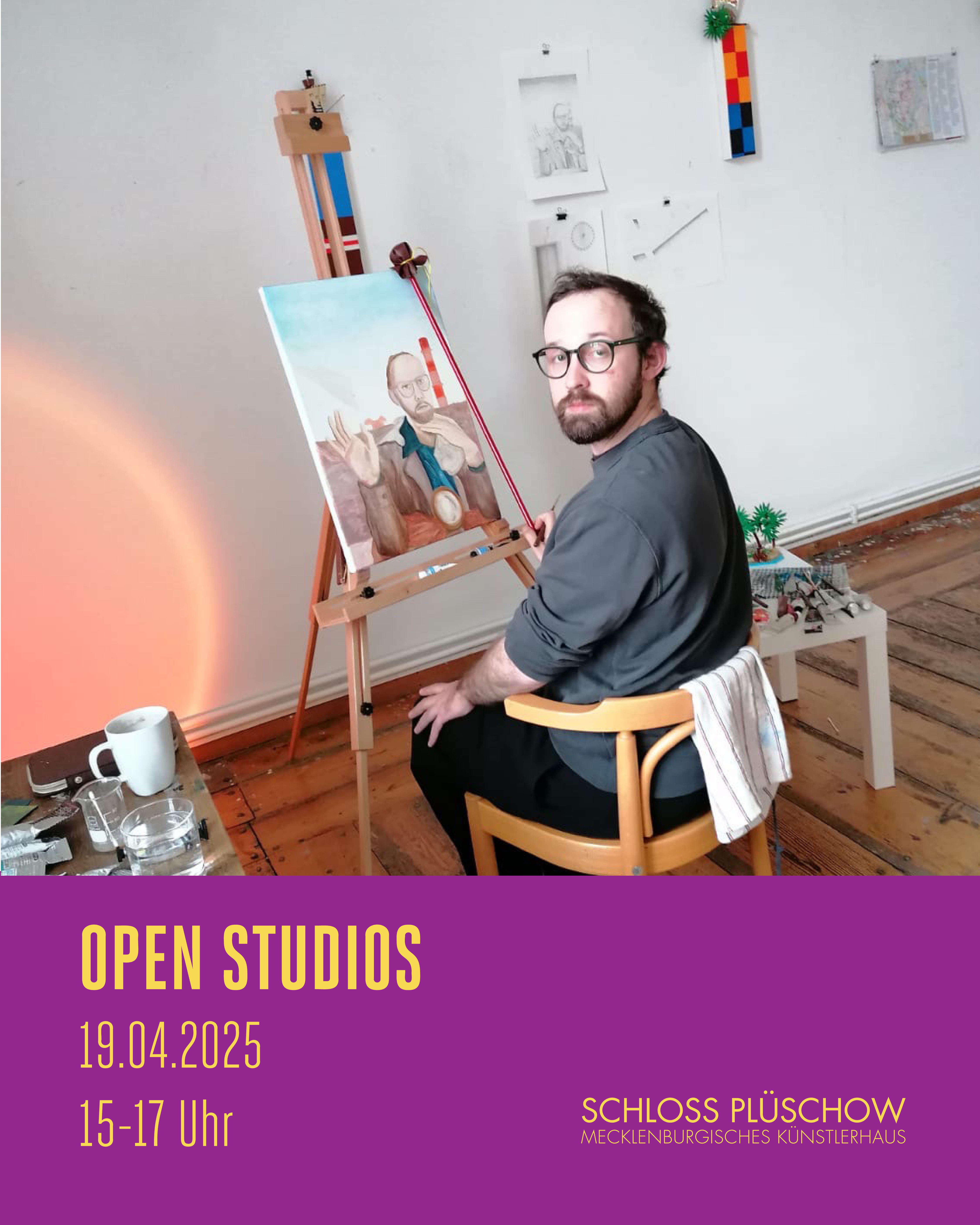 Other studios are also hard at work. The artists Christa Spencer (Dachau), Ulrike Bunge (Berlin) and Miro Zahra (Plüschow), together with their colleagues from the partner artist residences, are making intensive use of their time at Schloss Plüschow to work on their artistic projects and engage in dialogue with each other. They enjoy the spring awakening in nature and also take part in projects with the refugees from the Upahl refugee centre, which will be continued this year.