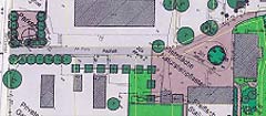 Zu der Gestaltung des Wirtschaftshofes liegt in Skizzenform eine Planung aus der Dorferneuerung vor. Diese Planung sieht eine alleeartig mit Rotdornen bepflanzte Mittelachse vor. Diese Planungsidee mit einer Betonung der Mittelachse wurde nach denkmalpflegerischen Recherchen im Landesamt für Denkmalpflege, Landesarchiv und in der Denkmalpflege des Landkreises nicht weiter verfolgt. Es wurde festgestellt, dass eine Betonung der Mittelachse im Widerspruch zu den denkmal-pflegerischen Ansätzen besteht, da der Wirtschaftshof in der Vergangenheit keinerlei repräsentativen Charakter hatte und es in diesem Bereich keinen axialen repräsentativen Zugang in Form einer Allee zum Schloss gab.